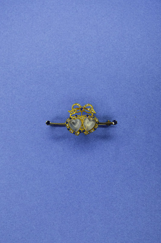 Antique Moonstone Double Loveheart Pin